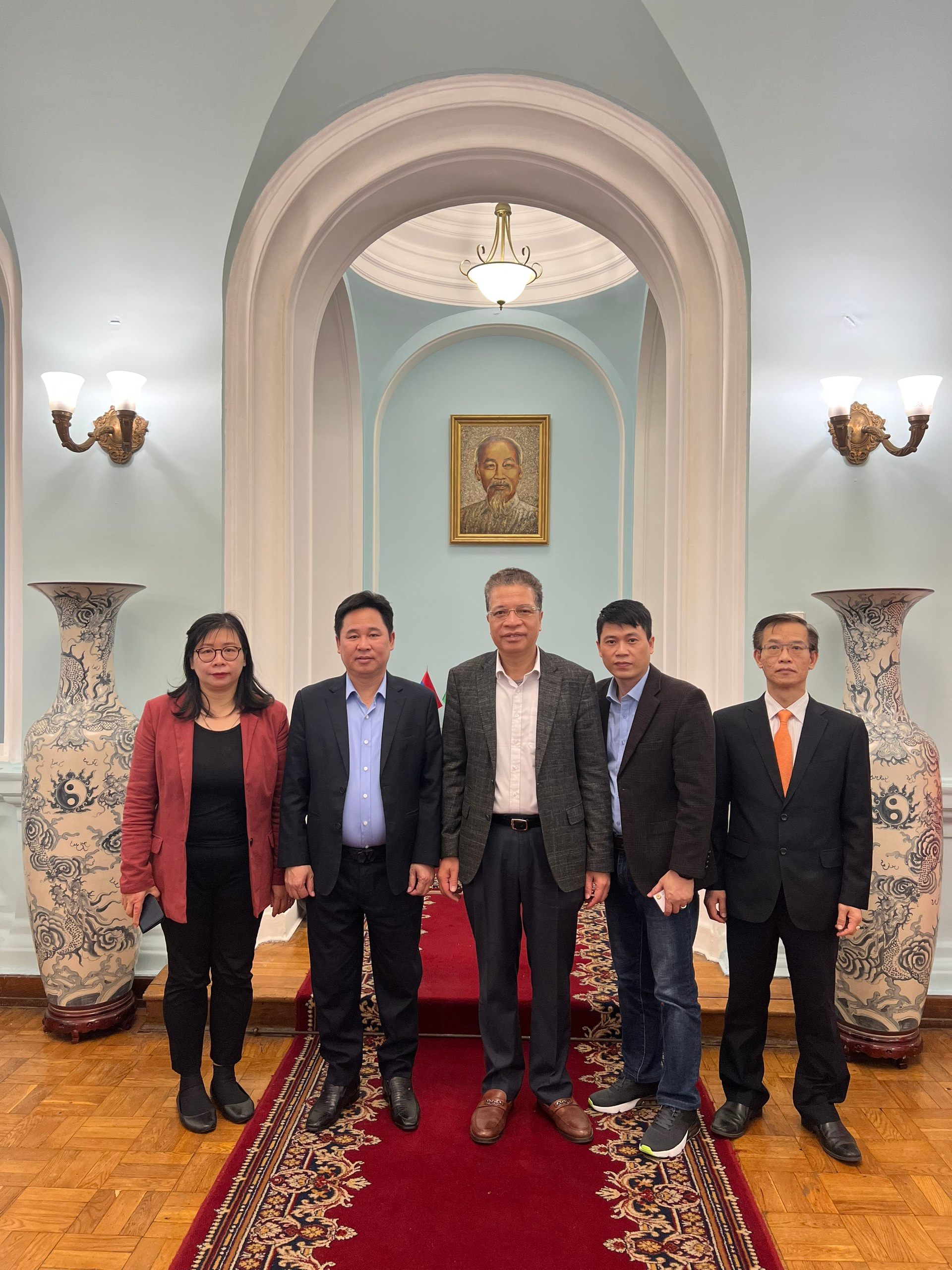 Ông Đặng Minh Khôi - Đại sứ đặc mệnh toàn quyền nước Cộng hòa Xã hội Chủ nghĩa Việt Nam tại Liên Bang Nga cùng các cán bộ nhân viên Đại sứ quán bày tỏ vui mừng đón tiếp và làm việc với đoàn.