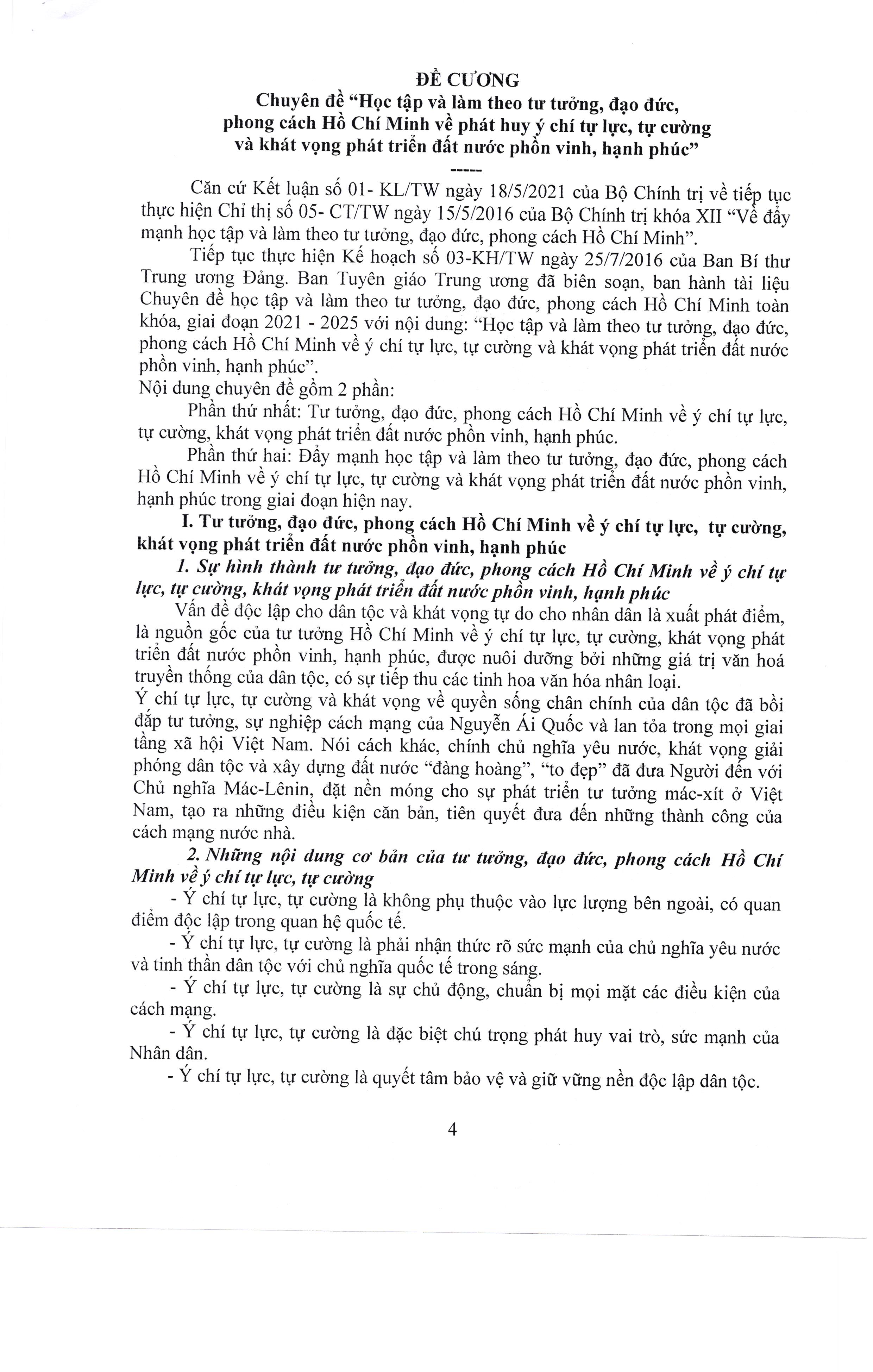 Kế hoạch triển khai thực hiện chuyên đề "Học tập và làm theo tư tưởng, đạo đức và phong cách Hồ Chí Minh về ý chí tự lực, tự cường và khát vọng phát triển đất nước phồn vinh, hạnh phúc"