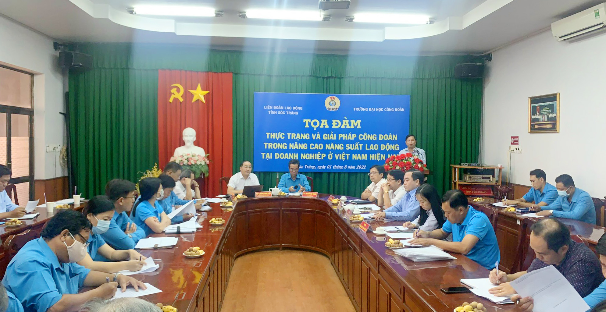 Nằm trong Kế hoạch nghiên cứu đề tài cấp Tổng Liên đoàn: “Vai trò của công đoàn trong nâng cao năng suất lao động tại doanh nghiệp Việt Nam hiện nay”, ngày 01/8/2022, tại tỉnh Sóc Trăng, Trường Đại học Công đoàn phối hợp với Liên đoàn Lao động tỉnh Sóc Trăng tổ chức tọa đàm khoa học: Vai trò của công đoàn trong nâng cao năng suất lao động tại doanh nghiệp Việt Nam hiện nay.