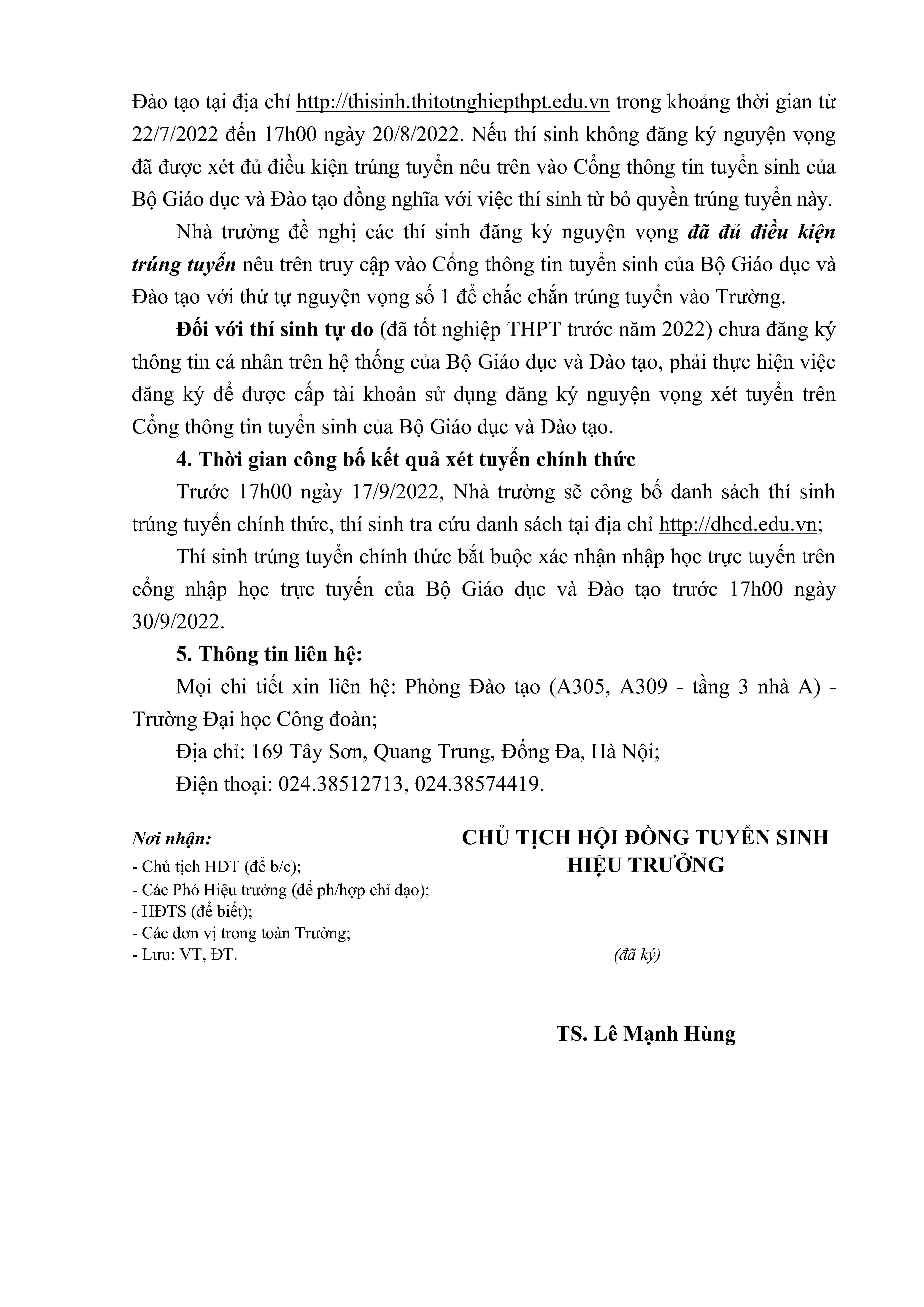 Danh sách thí sinh đủ điều kiện trúng tuyển (trừ điều kiện tốt nghiệp THPT) vào đại học hệ chính quy năm 2022 theo phương thức xét tuyển dựa vào kết quả học tập bậc THPT (học bạ): Xem tại đây