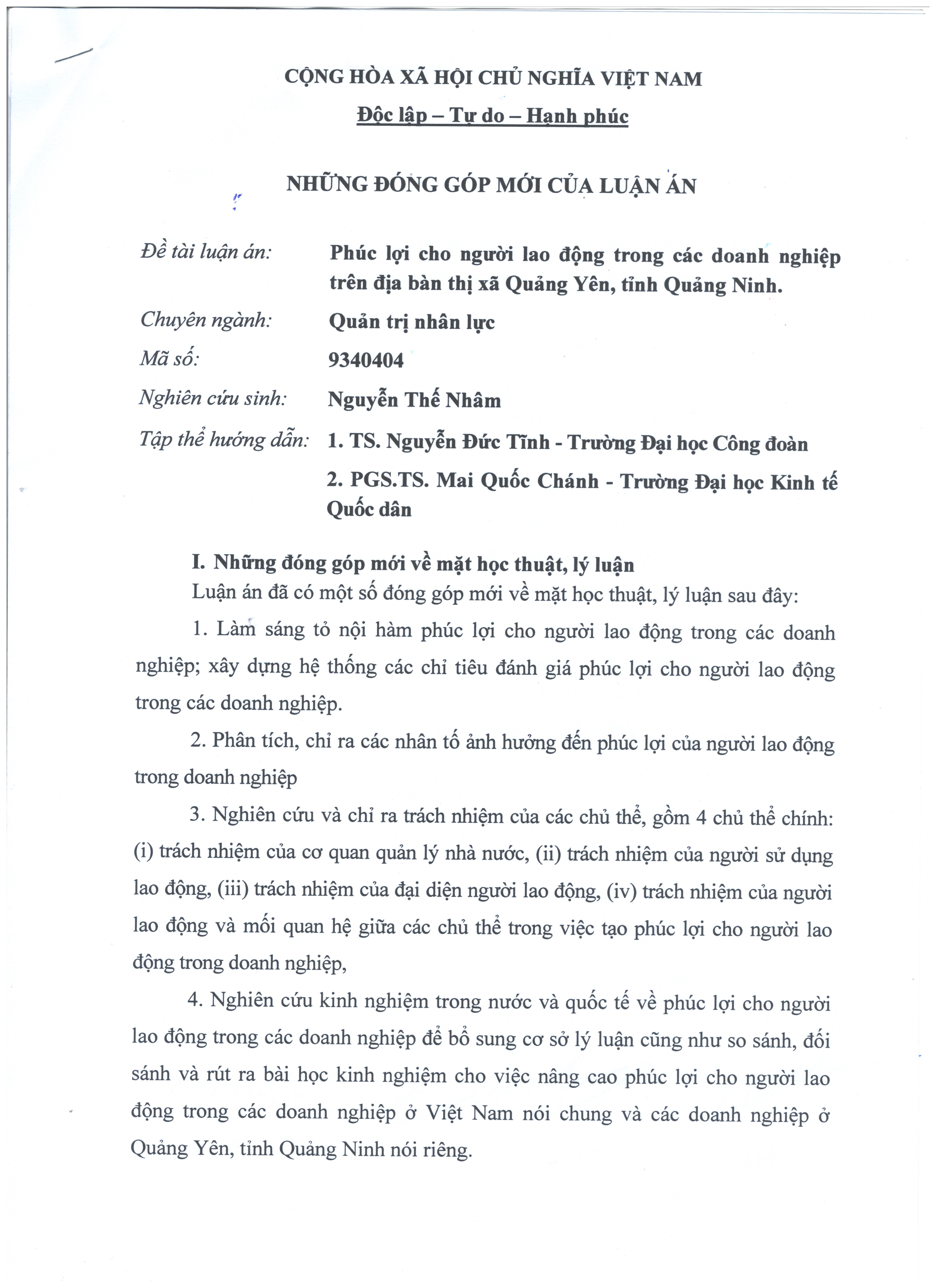 Luận án tiến sĩ của NCS Nguyễn Thế Nhâm