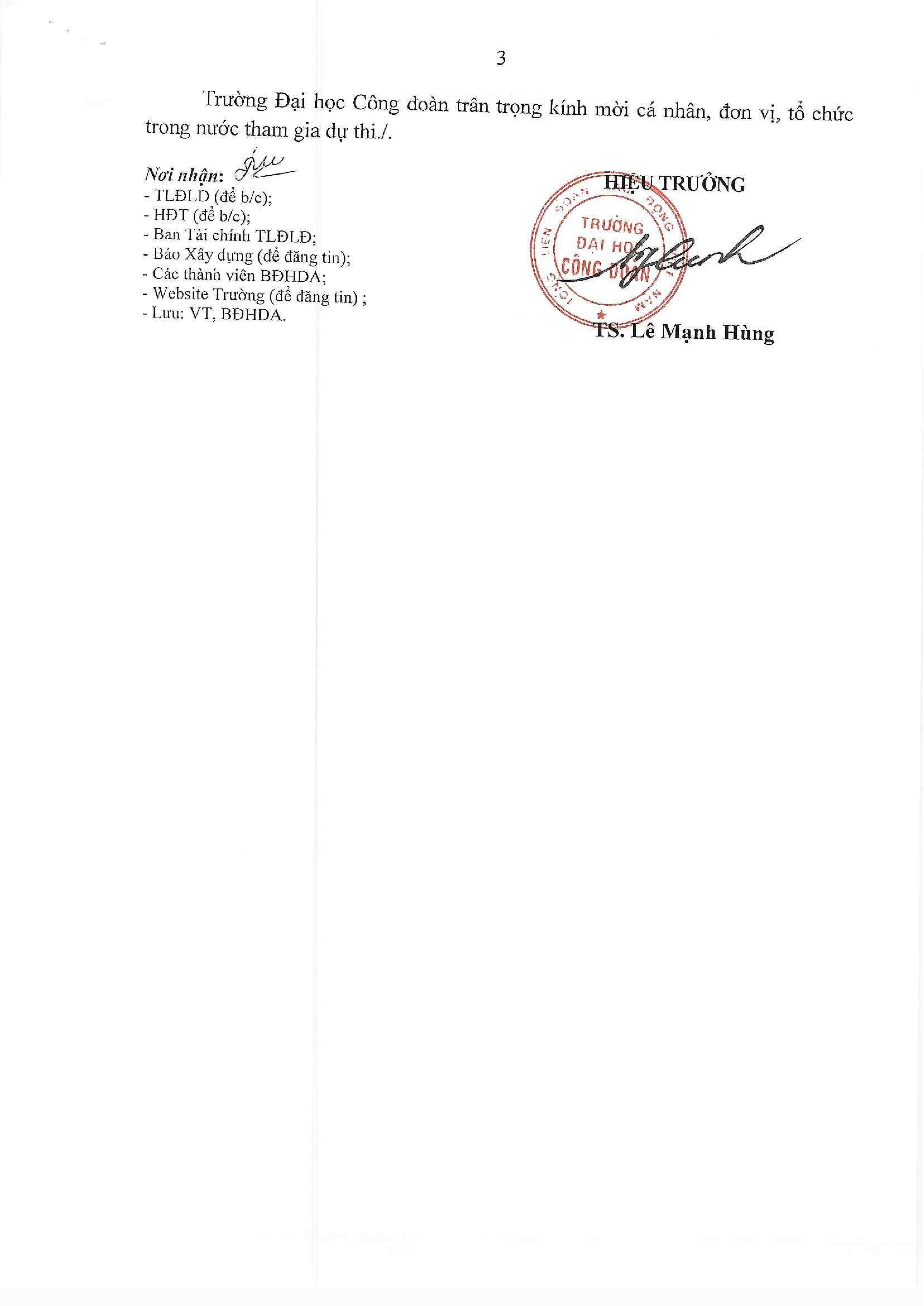 Về việc tổ chức thi phương án kiến trúc dự án đầu tư sửa chữa, nâng cấp Trường Đại học Công đoàn Cơ sở I tại Hà Nội