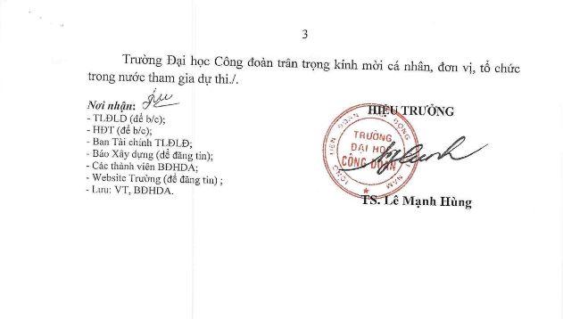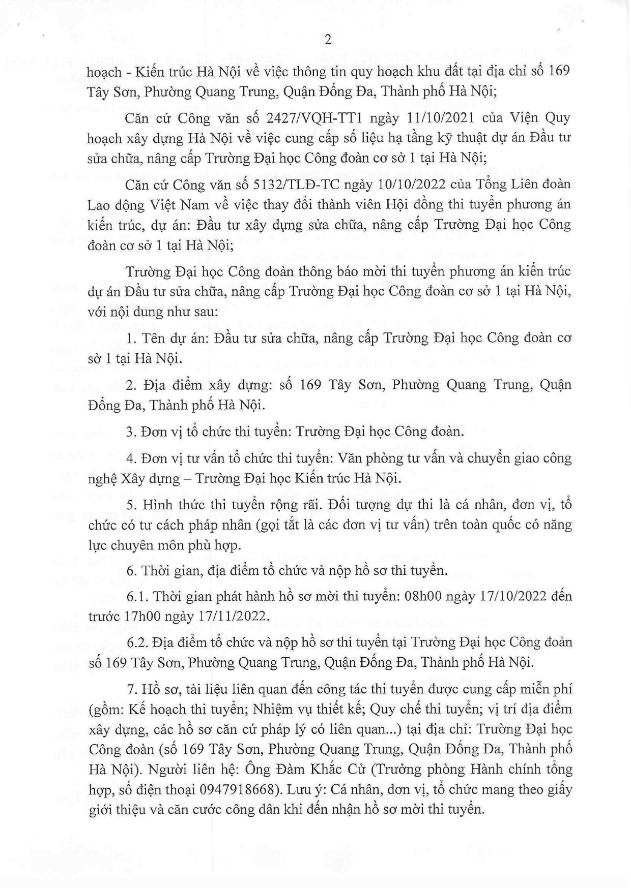 Về việc tổ chức thi phương án kiến trúc dự án đầu tư sửa chữa, nâng cấp trường Đại học Công Đoàn cơ sở II tại Hà Nội
